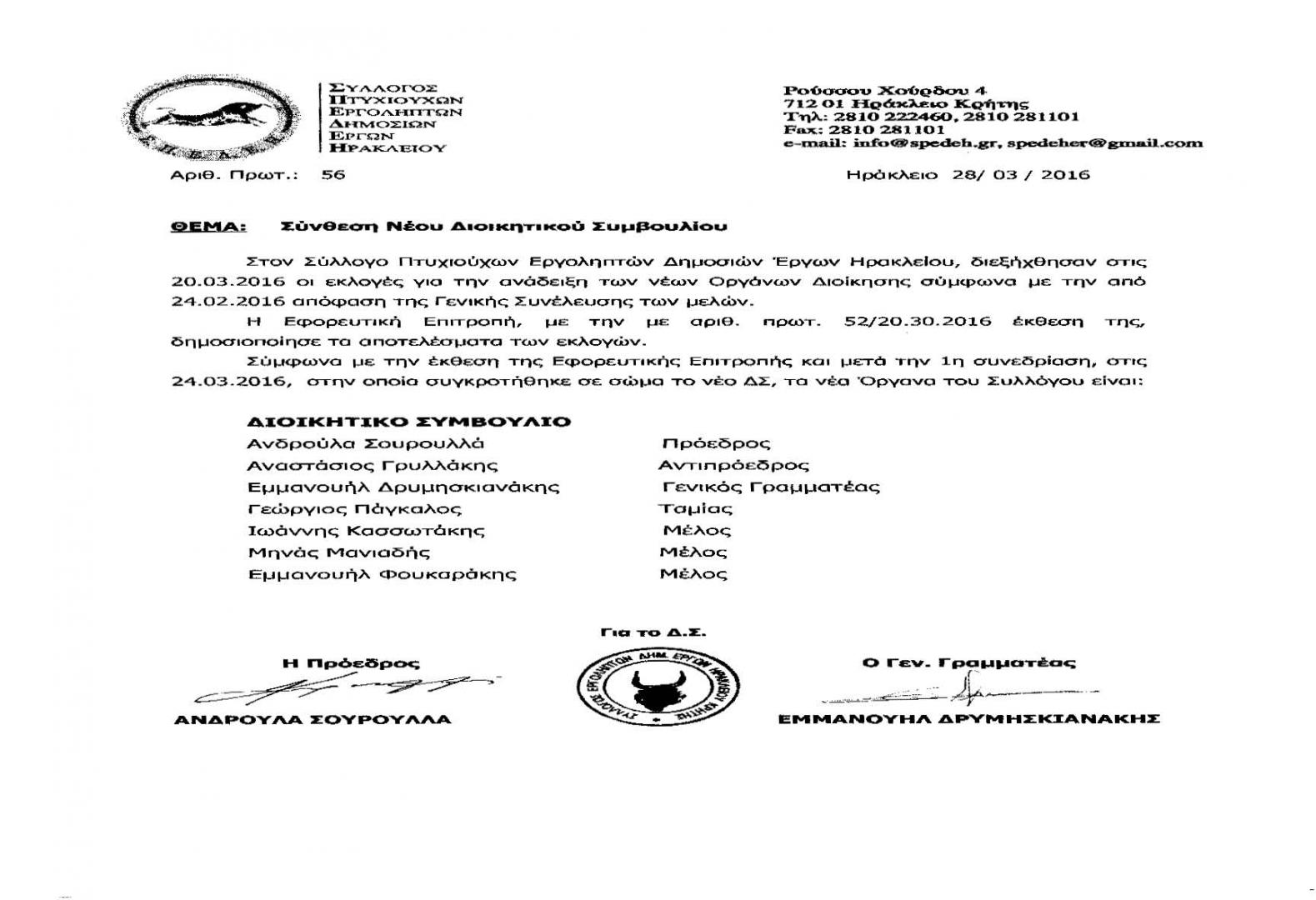 Σύνδεσμος Π.Ε.Δ.Ε. Ηρακλείου: Συγκρότηση σε σώμα του εκλεγέντος νέου Δ.Σ. του Συνδέσμου